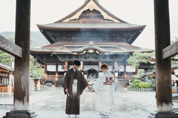 新郎新婦の衣裳やヘアメイク、着付、写真撮影まで含まれているお得なプラン。国宝善光寺でのロケーション撮影も含まれるので記念の写真もたくさん残せます。賑やかな仲見世通りでも撮影ができるのでゆっくり楽しんでみては♪